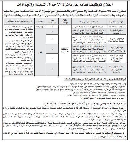 مؤسسات حكومية تعلن عن حاجتها لتعبئة وظائف شاغرة