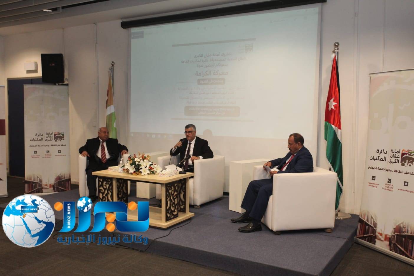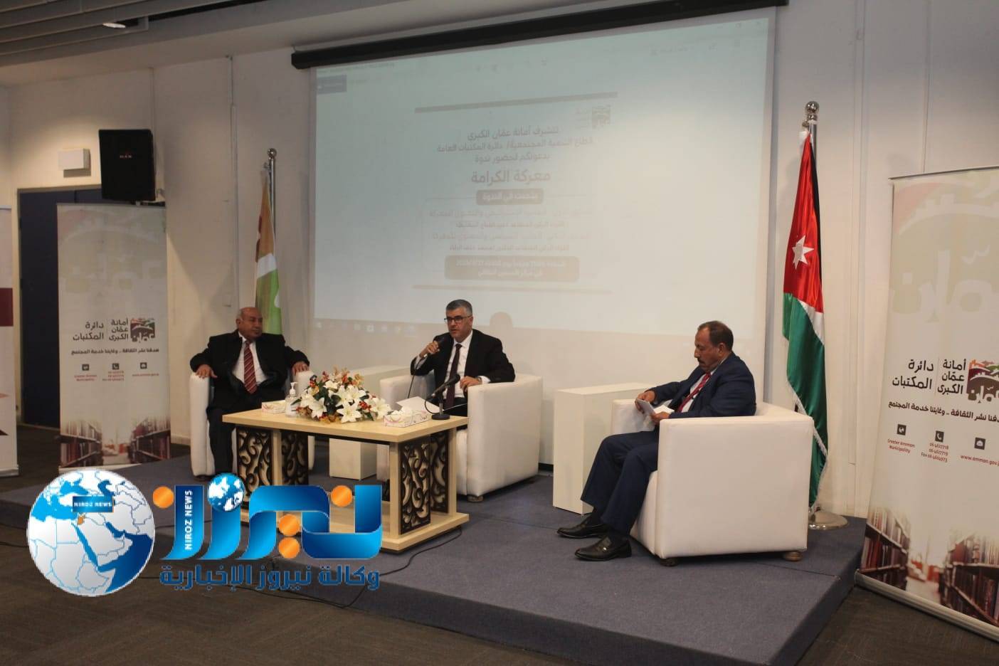 استضافت أمانة عمان الكبرى في مركز الحسين الثقافي الملكي صباح اليوم الثلاثاء 21 آذار 2023 اللواء الركن المتقاعد عبدالفتاح المعايطة النائب الأسبق واللواء الركن المتقاعد الدكتور محمد خلف الرقاد مدير التوجيه المعنوي الأسبق وأستاذ العلوم السياسية في الندوة التي أقامها قطاع التنمية المجتمعية / دائرة المكتبات العامة في أمانة عمان الكبرى حول معركة الكرامة الخالدة التي وقعت فجر الخميس يوم 21 آذار 1968م ، وحقق فيها أبطال الجيش العربي نصراً ساحقاً على القوات الإسرائيلية المهاجمة على طول الجبهة الأردنية في منطقة غور الأردن الأوسط .