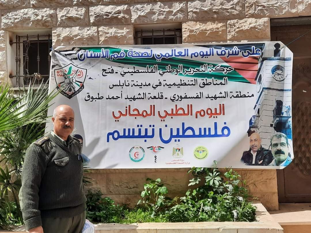 نظمت الخدمات الطبية العسكرية الفلسطينية في نابلس، وبالشراكة مع وزارة الصحة، ونقابة أطباء الأسنان الفلسطينية- اللجنة الفرعيه لنقابة أطباء الأسنان نابلس- والإغاثة الطبية نشاطاً توعوياً حول صحة الفم، وذلك بمناسبة اليوم العالمي لصحة الفم والأسنان.