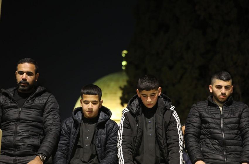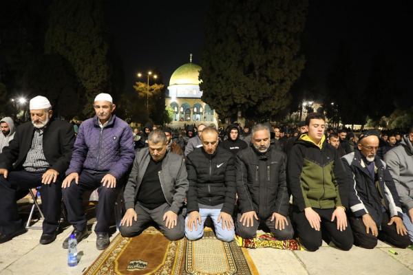 أدى نحو 20 ألف مصل صلاتي العشاء والتراويح في رحاب المسجد الأقصى المبارك، مساء اليوم الأربعاء، رغم تضييقات الاحتلال الإسرائيلي.