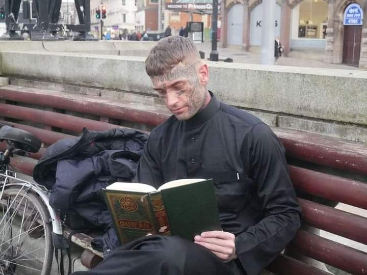تداول ناشطون عبر شبكات التواصل الاجتماعي فيديوهات لشاب بريطاني وهو يحاول قراءة سورة الفاتحة وبعض آيات القرآن لأول مرة بعد أيام من اعتناقه الإسلام، أثناء أداء مناسك العمرة في العشر الأواخر من شهر رمضان.