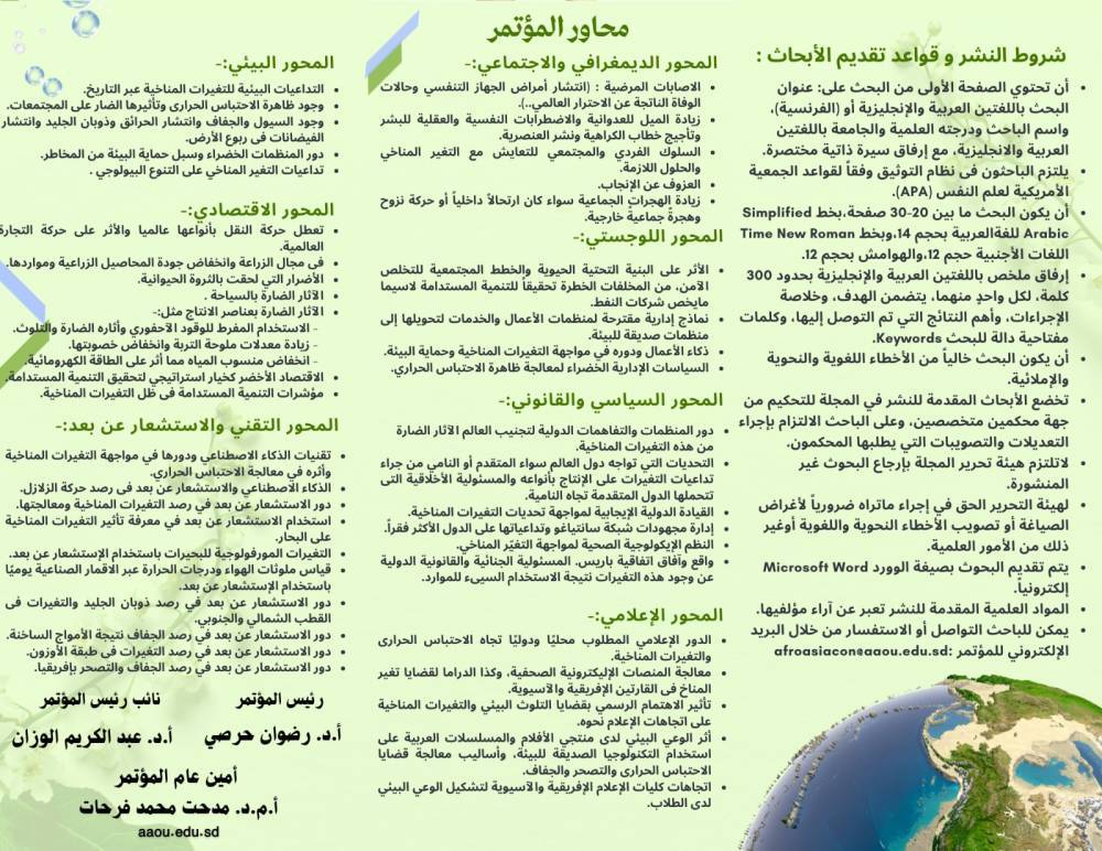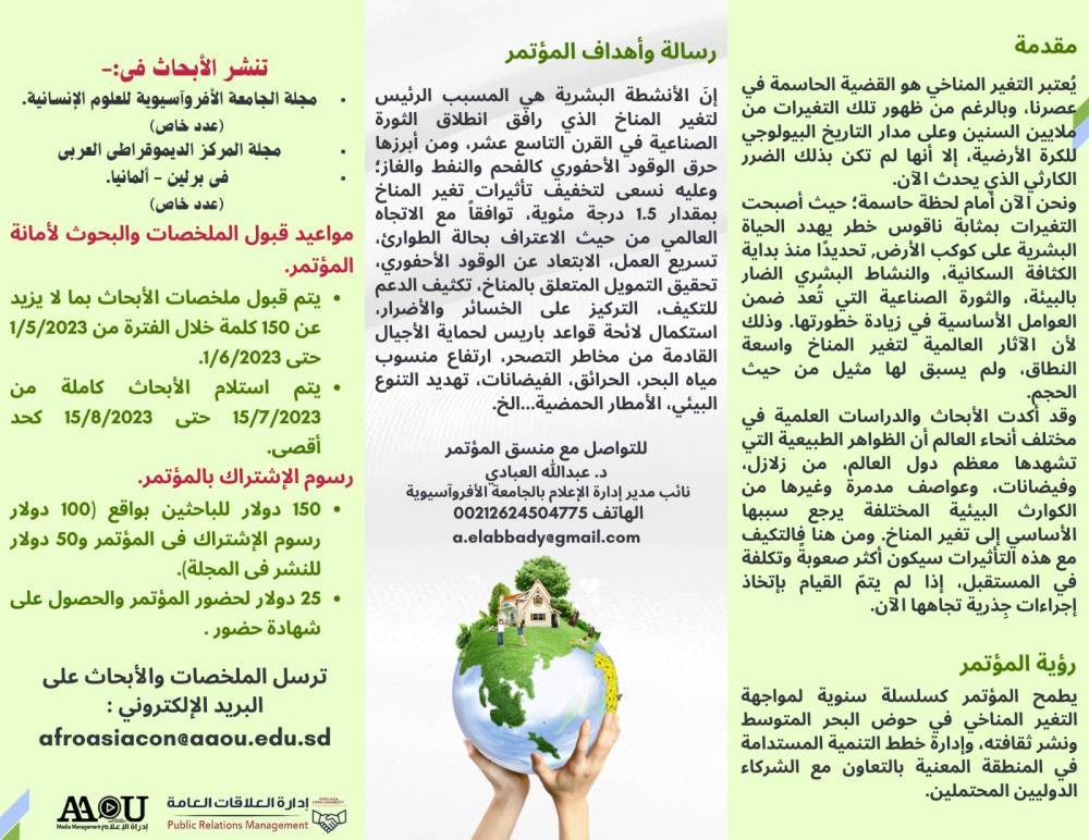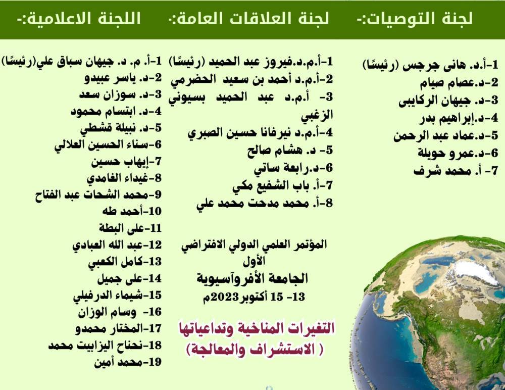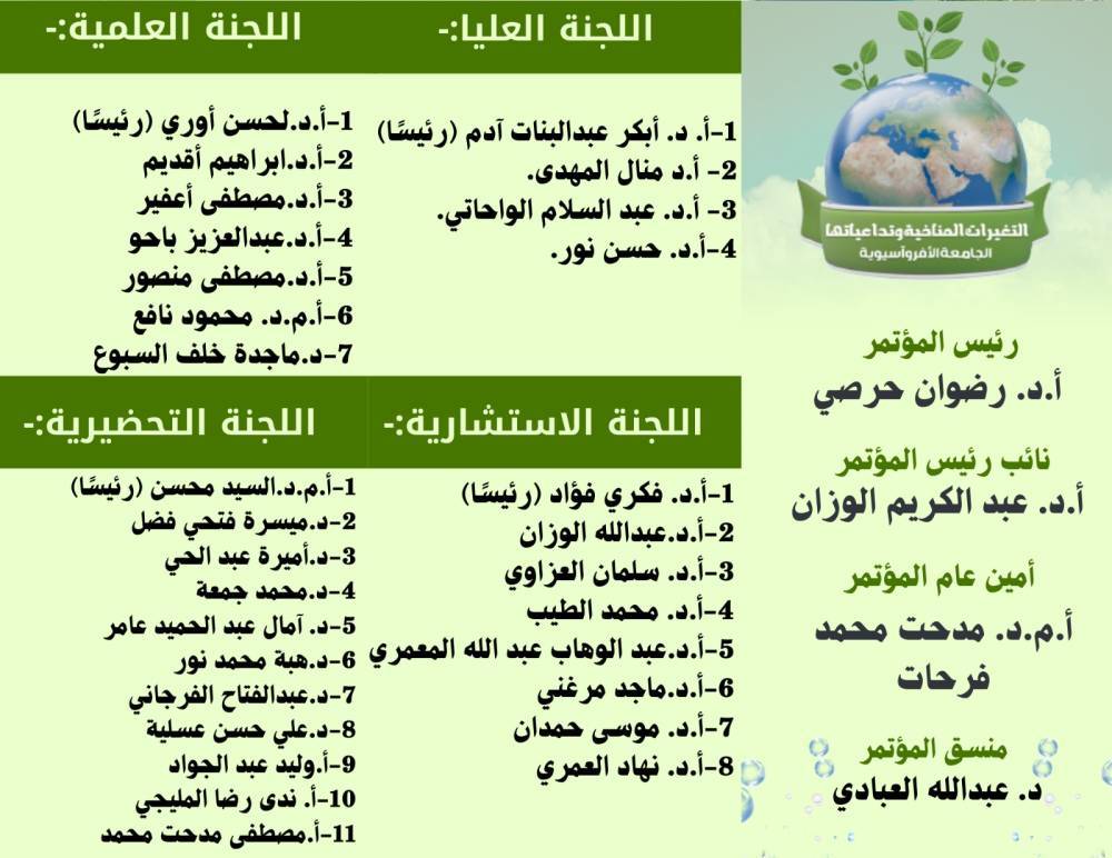 بمشاركة جامعات ومؤسسات شريكة ، مؤتمرها الدولي العلمي الاول الموسوم "التغيرات المناخية وتداعياتها، الاستشراف والمعالجة"، شهر اكتوبر 2023 على مدار ثلاثة أيام عن طريق التناظر عن بعد، ويهدف المؤتمر العلمي الاول للجامعة، دراسة التغير المناخي في حوض البحر الأبيض المتوسط ونشر ثقافته، وكذلك بحث خطط التنمية المستدامة المواكبة لهذا التغير. ويناقش المؤتمر عدة محاور منها: المحور الديمغرافي والاجتماعي،