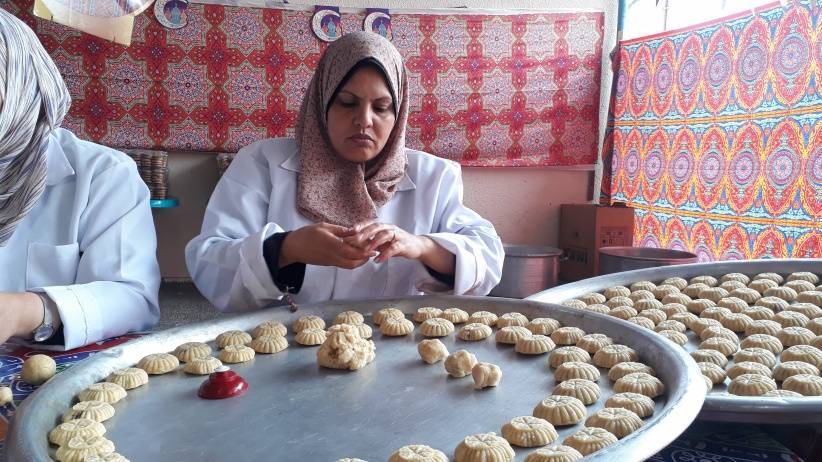 أمهات الأيتام يصنعن الكعك العيد طلبا للرزق في غزة
