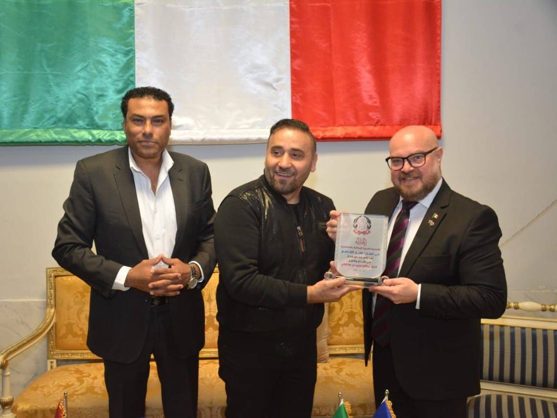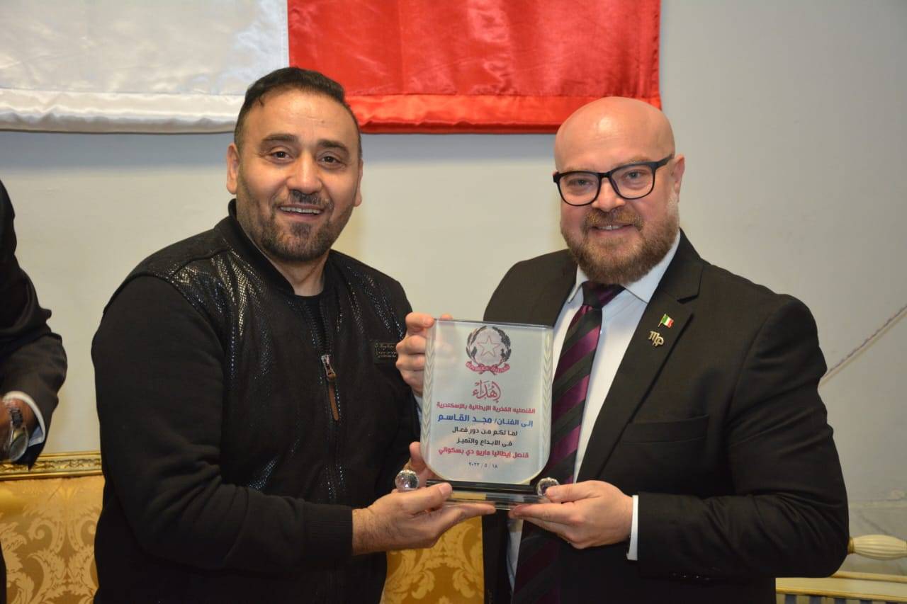 مصر- كرم امس «ماريو دي باسكوالي» القنصل الفخري الايطالي، المطرب مجد القاسم ضمن امسية ثقافية اقيمت على شرفه بالإسكندرية.