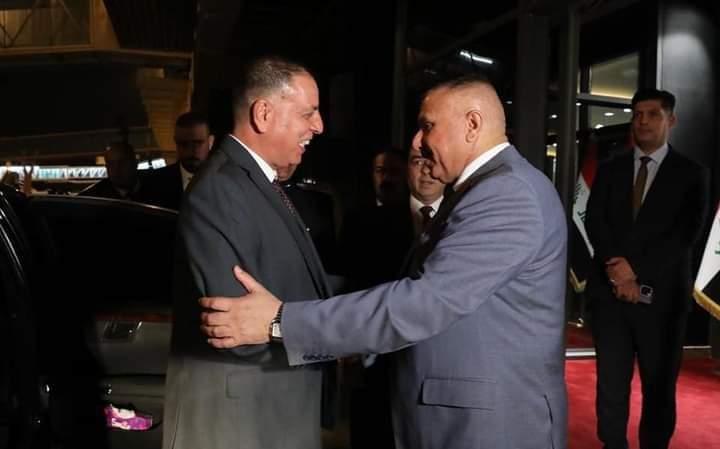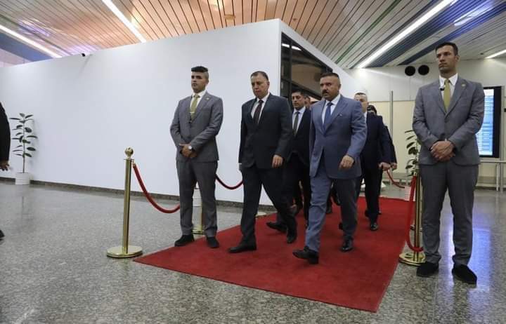 استقبل وزير الداخلية العراقي عبد الأمير الشمري، اليوم السبت، وزير الداخلية مازِن الفرّاية، في مطار بغداد الدولي.