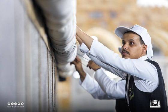 من جانبه، أوضح الرئيس العام أن عملية رفع ستار الكعبة تتم عن طريق مجموعة من المختصين من مجمع الملك عبدالعزيز لكسوة الكعبة المشرفة، وهي عبارة عن طي ستار الكعبة المكسوة بقطعة من الحرير الأسود المخطوط عليها آيات من القرآن الكريم للأعلى؛ لرفعها عن العبث، ولتكون فرصة سانحة للطائفين لرؤية أستار الكعبة مرفوعة.