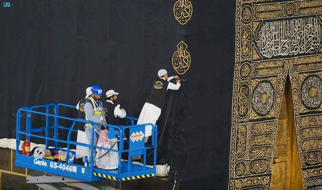 رفعت أمس الرئاسة العامة لشؤون المسجد الحرام والمسجد النبوي، ممثلة بوكالة مجمع الملك عبدالعزيز لكسوة الكعبة المشرفة، الجزء السفلي من كسوة الكعبة المشرفة بمشاركة الرئيس العام لشؤون المسجد الحرام والمسجد النبوي الشيخ الدكتور عبدالرحمن السديس، جريًا على العادة السنوية بارتفاع ثلاثة أمتار وفق الخطة المعتمدة لموسم الحج، فيما تمت تغطية الجزء المرفوع بإزار من القماش القطني الأبيض بعرض مترين تقريبًا من الجهات الأربع.