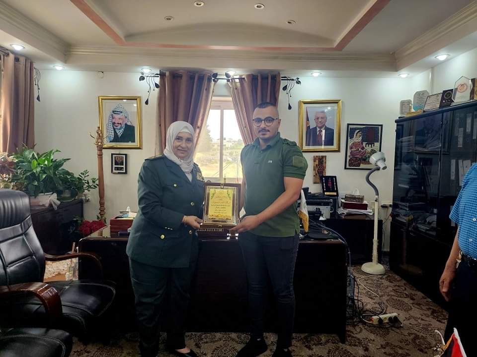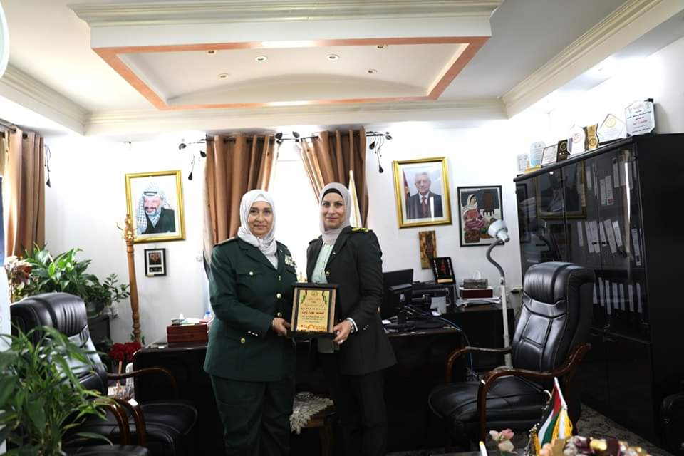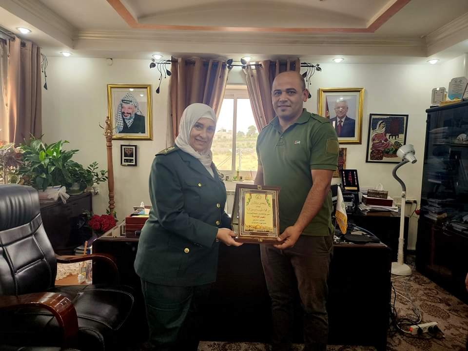 حيث قدمت البنا درعاً للمقدم / نجاة عبد اللطيف ثابت لتميزها في عملها بعد تسلمها ادارة عيادة طولكرم.