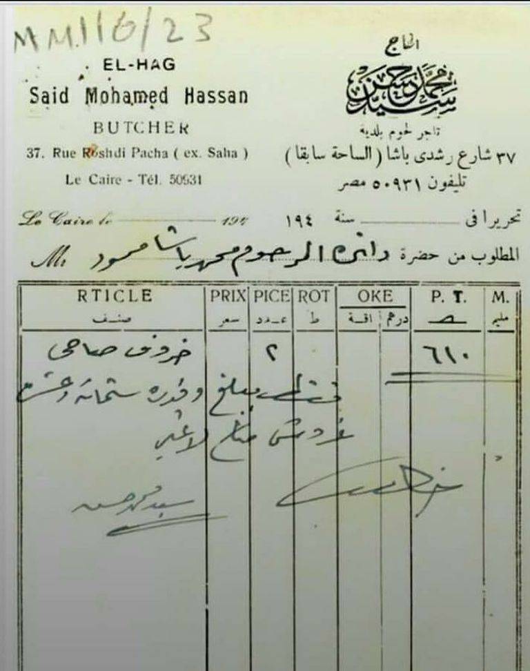 كان رواد السوشيال ميديا قد تداولوا على صفحات موقع التواصل الاجتماعي "فيس بوك"، صورة قديمة لفاتورة شراء خراف العيد، من تاجر لحوم بلدي في شارع رشدي باشا "الساحة سابقا".