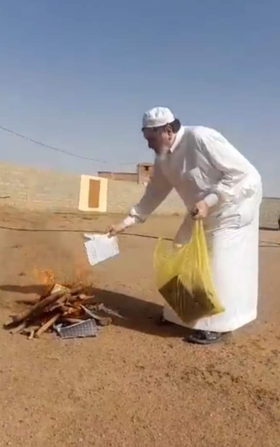 ونشرت حسابات سعودية لقطات لقيت رواجًا كبيرًا منذ الجمعة، لرجل الأعمال سليم بن فدغان الرشيدي، وهو يحرق دفاتر الديون، ويقول "هذي دفاتر الديون، والمطالبات لأعمال الورشة، والجميع في حِلّ، جميعه سلف قديم والا حديث”. وكالات