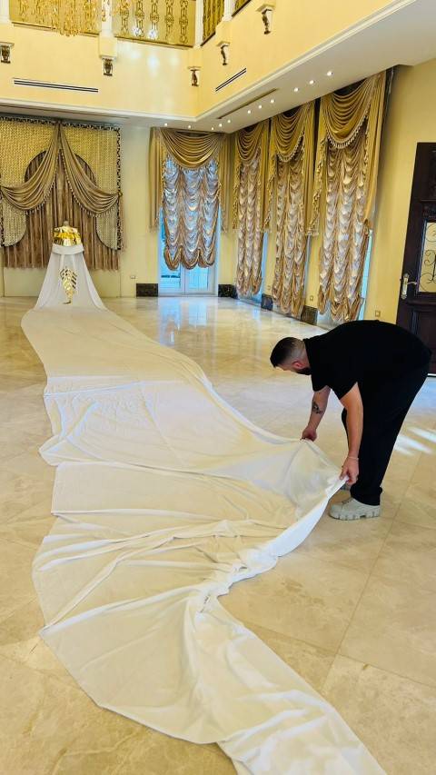 يبلغ طول الرداء 55.7 متر، تم استخدام 118 مترًا من القماش و3 أمتار من الجلد الذهبي الانعكاسي لصنع الرداء.