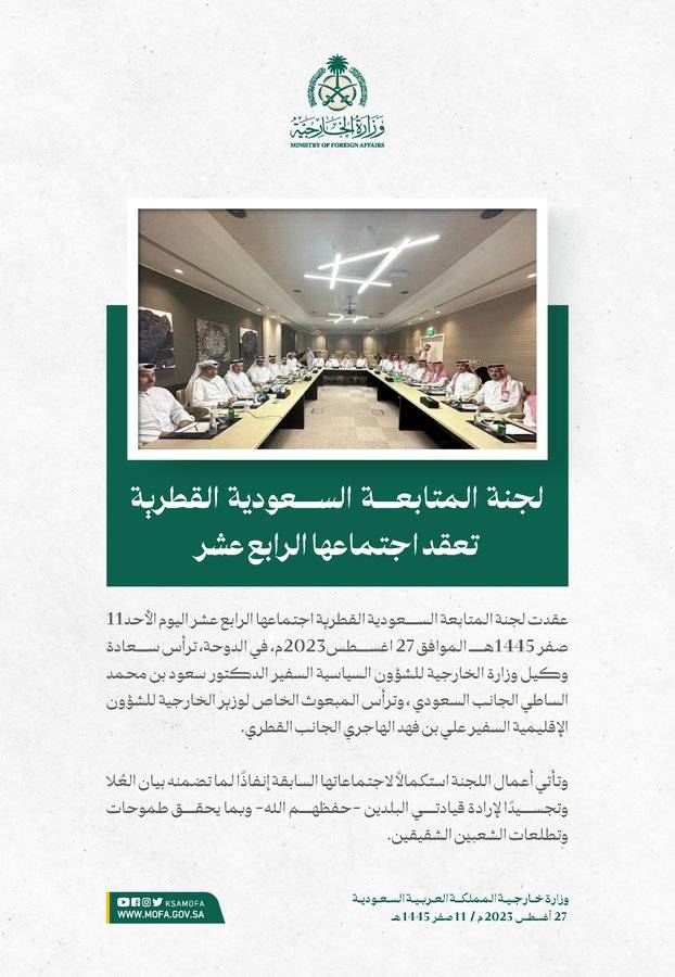 عقدت لجنة المتابعة السعودية القطرية، اجتماعها الرابع عشر، اليوم الأحد، في الدوحة.