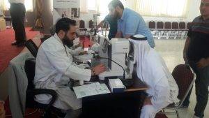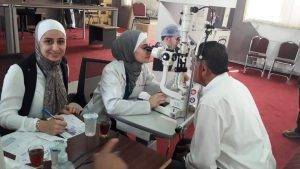 شمل اليوم الطبي فحوصات عيون للانحراف ودرجات الضعف مع أخصائي البصريات لفحص دقيق لأجزاء العين من قبل اخصائي العيون.