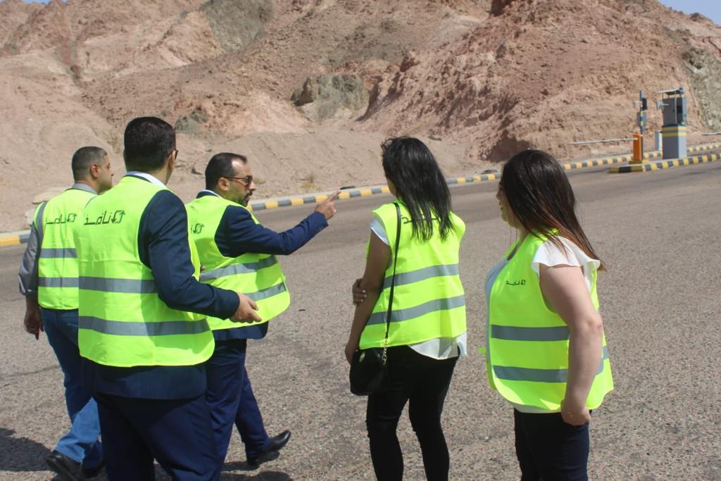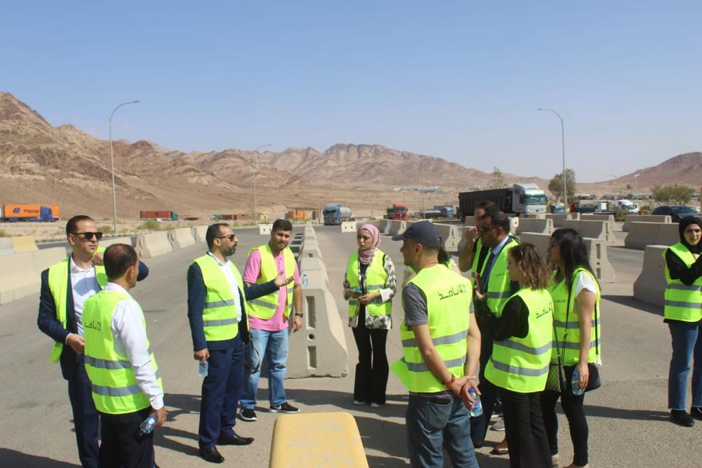 وفي الجولة التي شملت الاطلاع على عمل الشركة في مشروع دخول وخروج الشاحنات من والى العقبة وهو المشروع الاستراتيجي والمحوري لقطاع النقل البري في المملكة ويهدف الى تسهيل التجارة والنقل المحلي والدولي وتنظيم دور الشاحنات في موانىء العقبة ضمن اجراءات ذكية توفر الوقت والجهد وتمنع حدوث اي اختناقات في سلسلة التزويد .