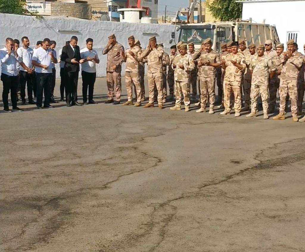 نفذ موظفو ومنتسبو وزارة الدفاع العراقية وقفة تضامنية وحدادًا، و ولاءً وإجلالاً للأرواح البريئة من أبناء الشعب الفلسطيني الشقيق، والتي راحت ضحيت غدر وخيانة في قطاع غزّة.