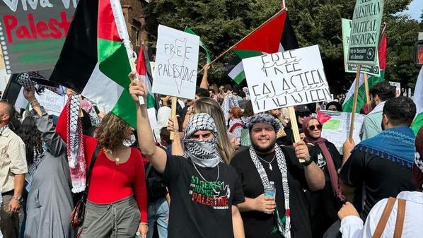 نظمت الجالية العربية ومتضامنون، مظاهرة احتجاجية في ولاية كاليفورنيا الأمريكية اليوم الجمعة، وذلك للمطالبة  بوقف العنف ضد أهل غزة.