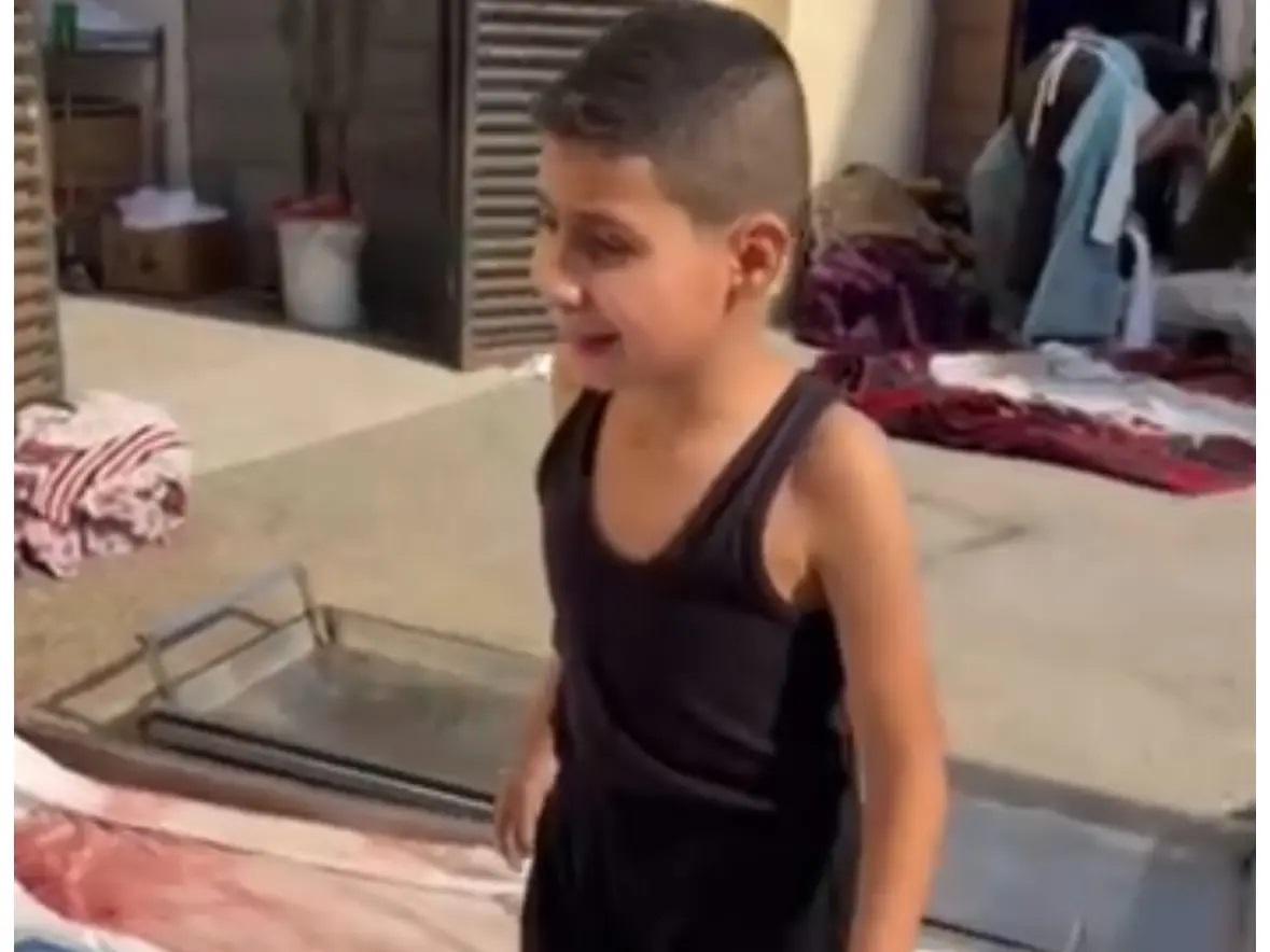 فقد أظهر الفيديو الطفل يفتش عن أحبابه الممددين أرضا في أكفان، وهو يحاول التعرف عليهم، متسائلاً عن "خليل" .
