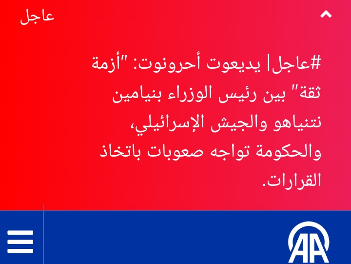 وصفت صحيفة  يديعوت أحرونوت بحسب ما نقلته وكالة الأناضول التركية أنه في هذه الأثناء يحدث  أزمة ثقة بين رئيس الوزراء بنيامين نتنياهو والجيش الإسرائيلي.
