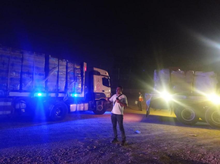 قالت جمعية الهلال الأحمر الفلسطيني الليلة الماضية، إن طواقمها تسلمت 93 شاحنة من الهلال الأحمر المصري محملة بالمساعدات الاغاثية الانسانية عبر معبر رفح الحدودي.