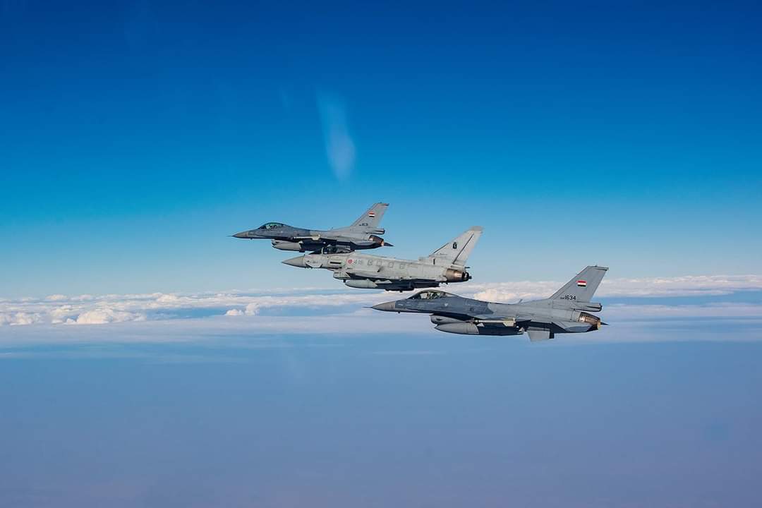 نفذت طائرات القوة الجوية العراقية المقاتلة نوع (F16) صباح يوم امس تمريناً مشتركاً (تقاطع جوي) مع طائرات سلاح الجو الإيطالي (Euro Fighter) في مناطق تدريب جنوب العراق.