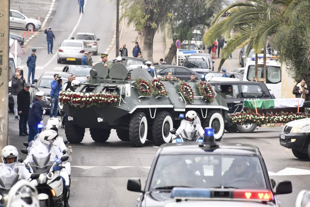 مراسم تشييع جثمان وزير الدفــاع الأسبق الجزائري اللواء المتقاعد خالد نزار بمقبرة العالية