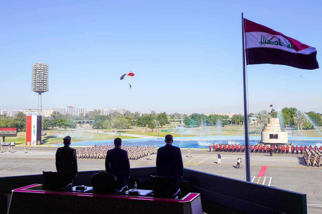 وأدى السيد القائد العام للقوات المسلحة التحية لوحدات وكراديس من المقاتلين تمثل مختلف صنوف الجيش العراقي، والتشكيلات الأمنية، بينما حلقت في سماء بغداد مختلف طائرات القوة الجوية العراقية ومروحيات طيران الجيش.