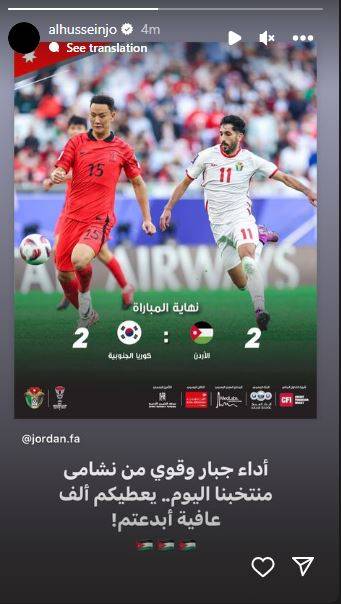 ولي العهد علق على المباراة عبر حسابه بإنستغرام، "أداء جبار وقوي من نشامى منتخبنا اليوم.. يعطيكم الف عافية أبدعتم”.