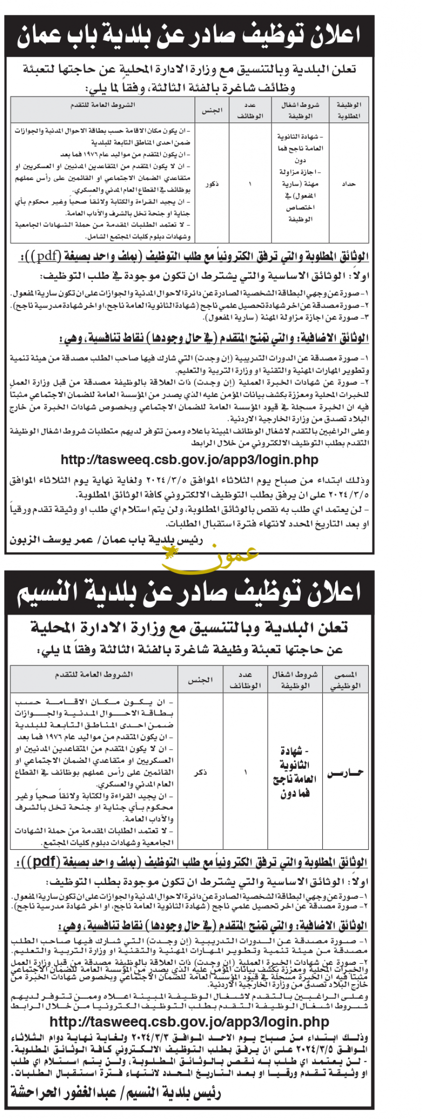 وظائف شاغرة ومدعوون للتعيين في مؤسسات حكومية
