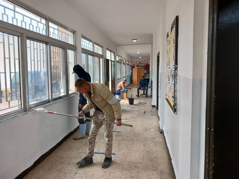 ان بلدية الكفارات أنجزت الكثير من اعمال الصيانة وحملات النظافة للمدرسة كمرحلة