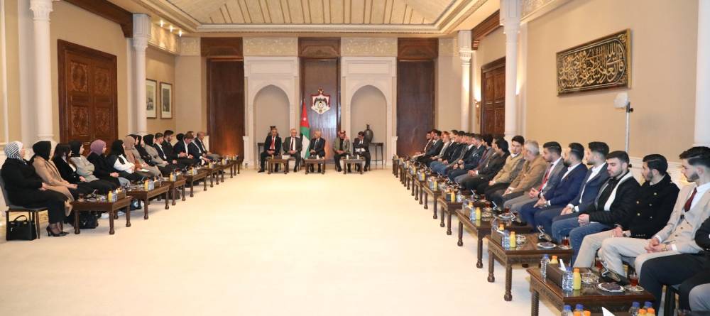 جاء ذلك، خلال لقائه اليوم الاثنين، في الديوان الملكي الهاشمي وفدا من طلبة وأعضاء من الهيئتين التدريسية والإدارية في جامعة اليرموك، بحضور بحضور مستشار جلالة الملك لشؤون العشائر كنيعان عطا البلوي.