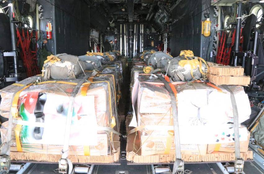 وتحتوي المساعدات التي تم إنزالها على مواد إغاثية وغذائية ومن ضمنها وجبات جاهزة عالية القيمة الغذائية، للتخفيف من معاناة الأهل في غزة جراء ما يتعرضون له من أوضاع صعبة.