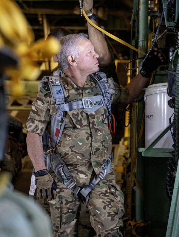 وقال بيان صادر عن القوات المسلحة الأردنية - الجيش العربي إن مشاركة جلالة الملك تأتي تأكيداً على استمرار الأردن في الوقوف إلى جانب الأشقاء الفلسطينيين، لإيصال المساعدات بكل الطرق المتاحة لأهالي غزة.