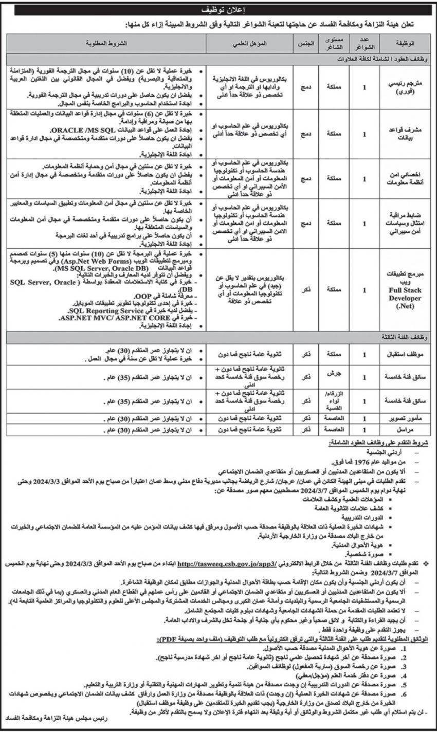 أعلنت مؤسسات حكومية، اليوم الأربعاء، عن حاجتها لتعبئة وظائف شاغرة.