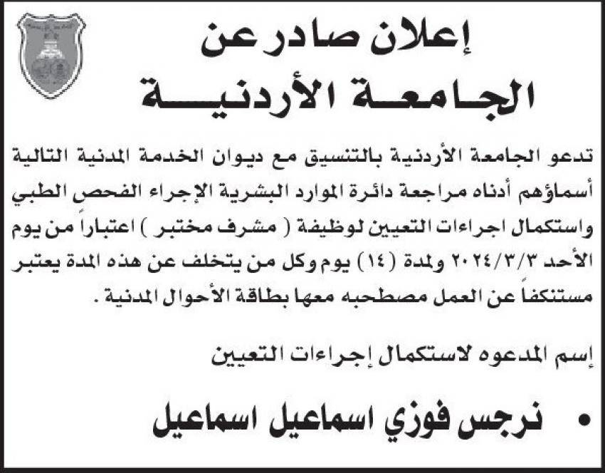 كما دعت مجموعة من المرشحين لإجراء المقابلات الشخصية وحضور الامتحان التنافسي.