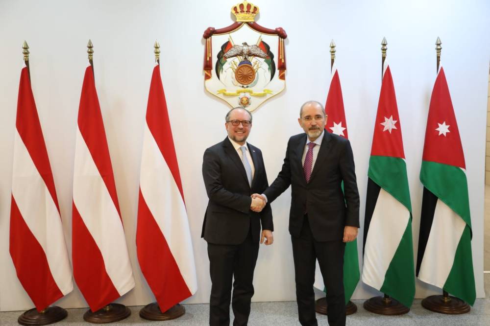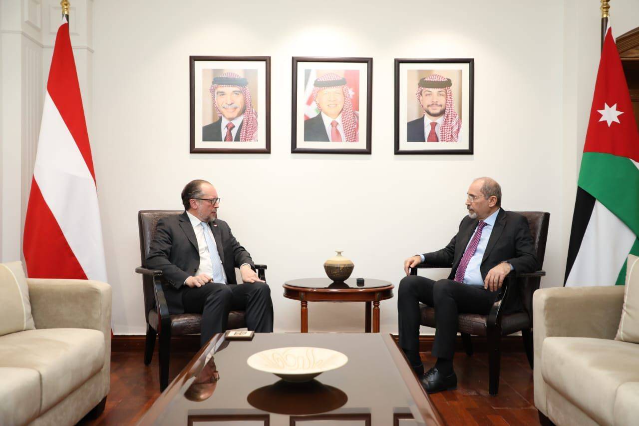 التقى نائب رئيس الوزراء ووزير الخارجية وشؤون المغتربين أيمن الصفدي، اليوم، وزير الخارجية النمساوي الكسنادر شالنبيرج، في اجتماع بحث تطورات الأوضاع في غزة، وسبل وقف الكارثة الإنسانية التي تنتجها الحرب، وضمان إيصال المساعدات الإنسانية للقطاع.
