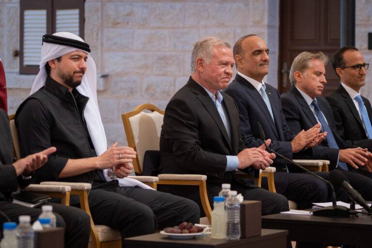 وحضر اللقاء رئيس الوزراء الدكتور بشر الخصاونة، ورئيس الديوان الملكي الهاشمي يوسف حسن العيسوي، ومدير مكتب جلالة الملك، الدكتور جعفر حسان، ومستشار جلالة الملك لشؤون العشائر كنيعان البلوي.