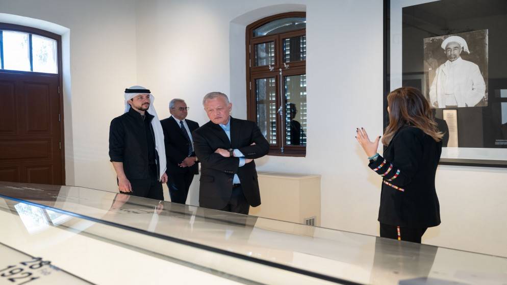 واطلع جلالته على مشروع ترميمه واستدامته كمبنى تراثي ومتحف ذي قيمة تاريخية كبيرة، ومحطة مهمة في مراحل تأسيس الدولة الأردنية