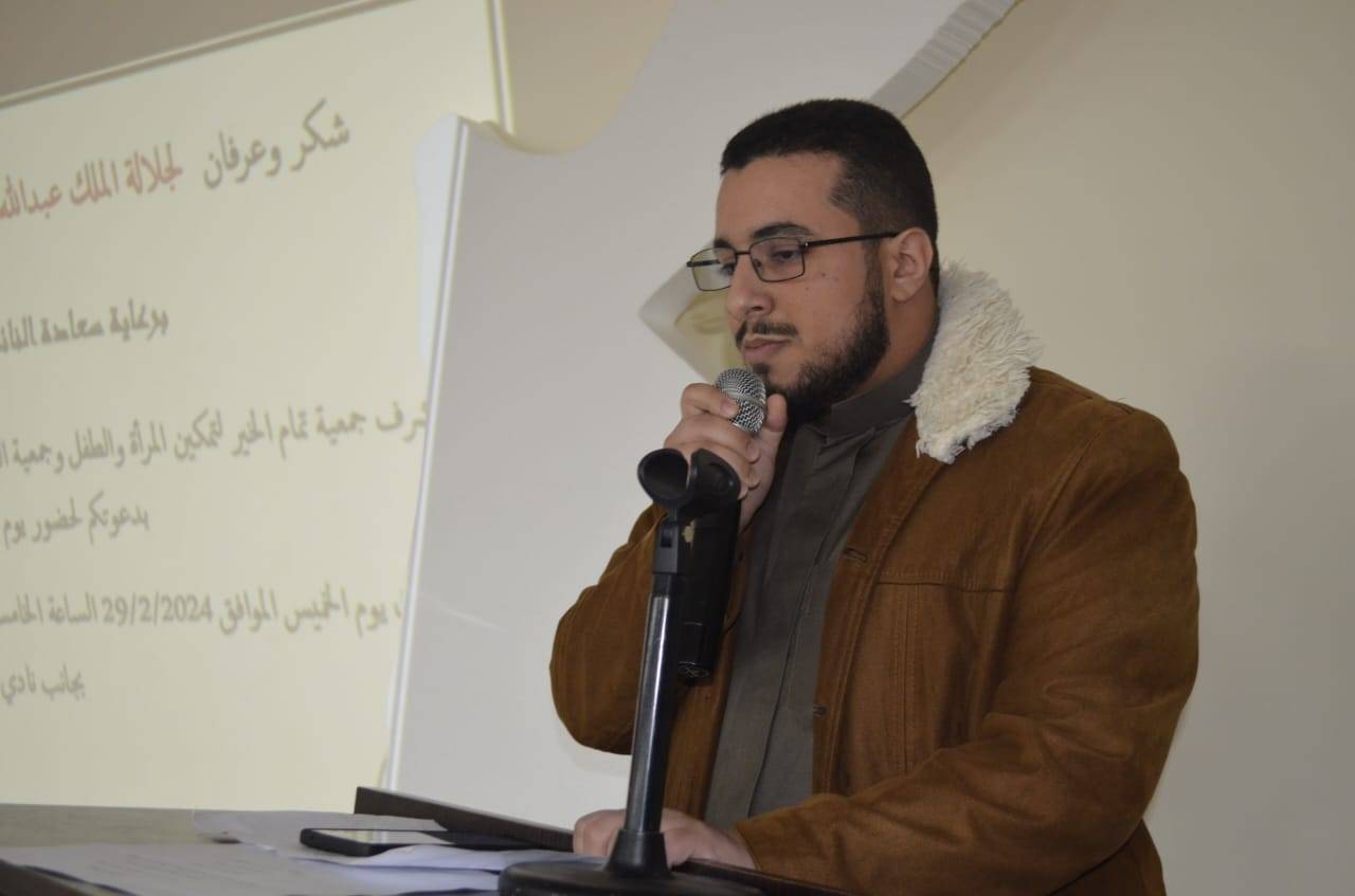 في بداية الحفل رحبت السيدة : مريم المشاقبة رئيسة جمعية تمام الخير لتمكين المرأة والطفل بالحضور، التي أرادت بهذا الحفل أن تقدم بطاقات الشكر والعرفان لجلالة الملك عبدالله الثاني المعظم، وهو خير داعم للمرأة من خلال تعزيز دورها في جميع المجالات.