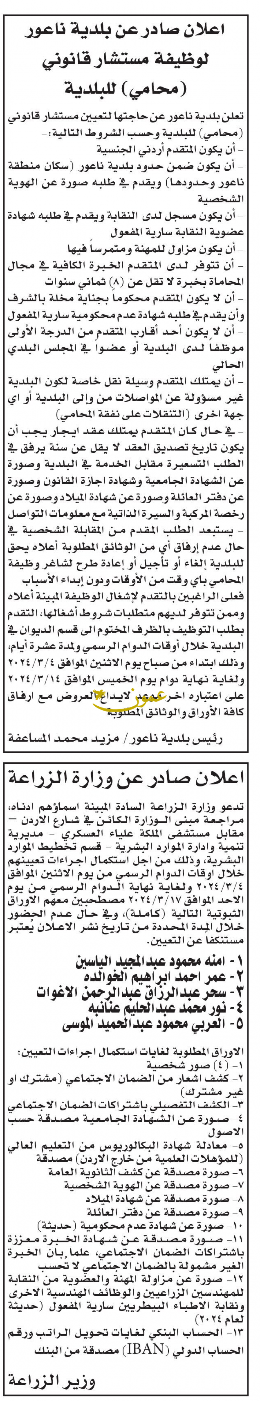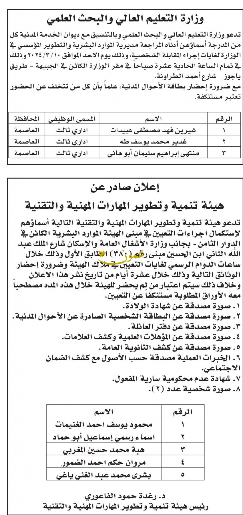 وظائف شاغرة ومدعوون للتعيين في مؤسسات حكومية (أسماء)