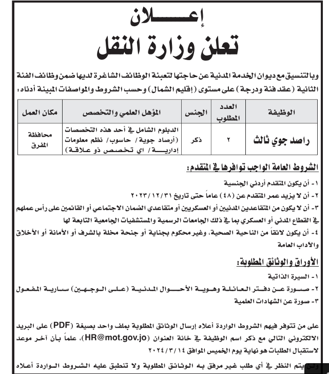 أعلنت وزارات وجامعات وبلديات عن توفر عدد من الشواغر لديها.
