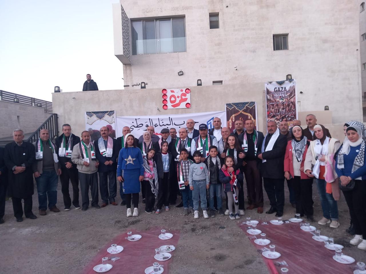 اقام حزب البناء الوطني وقفه تضامنية  بعنوان ( الصحون الفارغه ) تضامن مع أهل غزة بالقرب من مسجد الكالوتي في عمان حيث تحدث أمين عام الحزب الدكتور بركات عوجان أن هذه الوقفه تعبيراً منا عن الرفض القاطع على ما تقوم به قوات الاحتلال وما يتعرض له أهلنا في غزة من غطرسة العدو من قتل وتجويع الأهالي وتأتي هذه الوقفة تعبيراً  عن شجبنا لذلك وخصوصاً أننا في شهر رمضان المبارك ، وأننا بالحزب نؤكد وقوفنا خلف قيادتنا الهاشمية الحكيمه ونشكرها على موقفها الصريح والواضح في الدفاع عن غزة ويتمثل ذلك في مواقف الملك وتصريحاته  ودعمه  للانزالات الجوية التي يقوم بها جيشنا العربي  نصرة للأهل في غزة وهذا يدل على موقف الاردن قيادة وشعب
