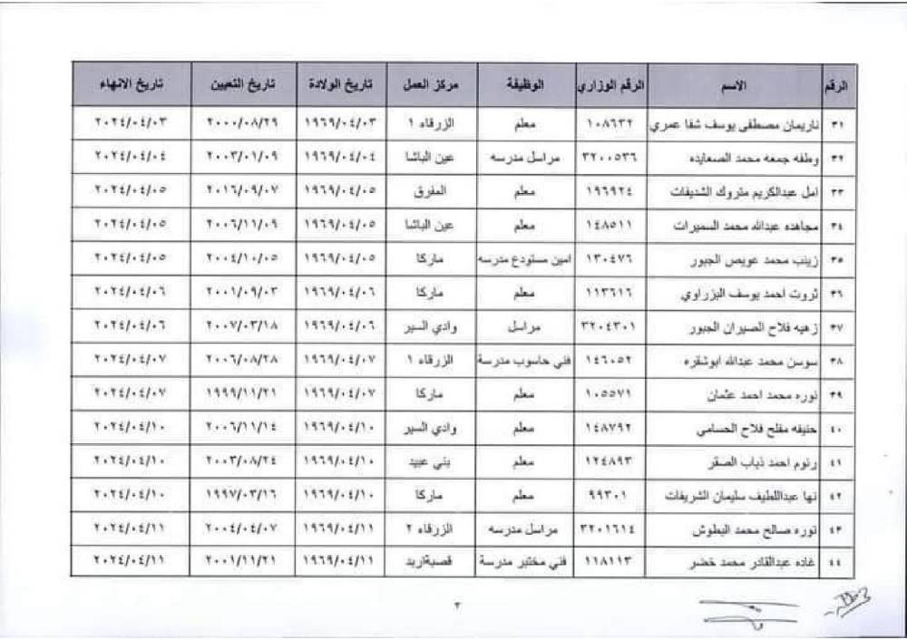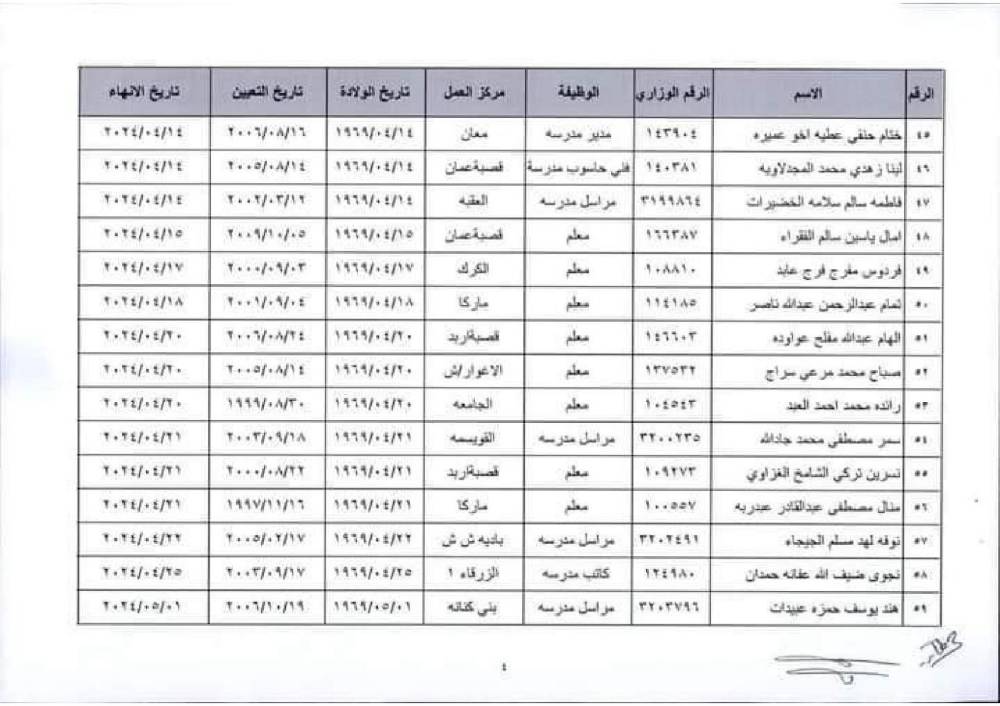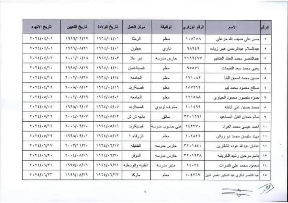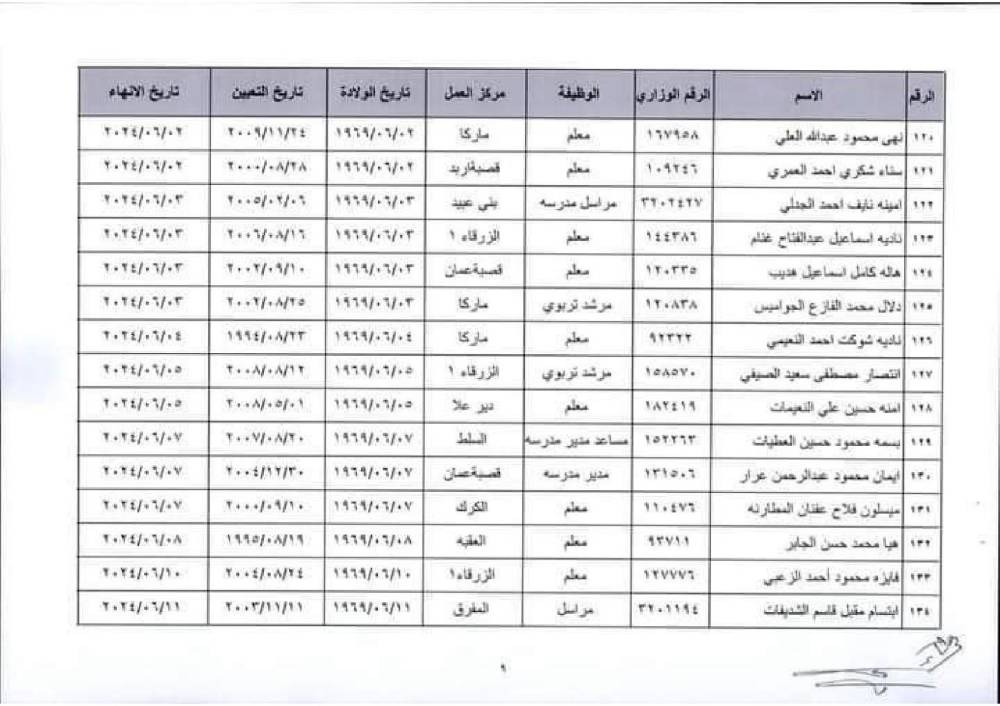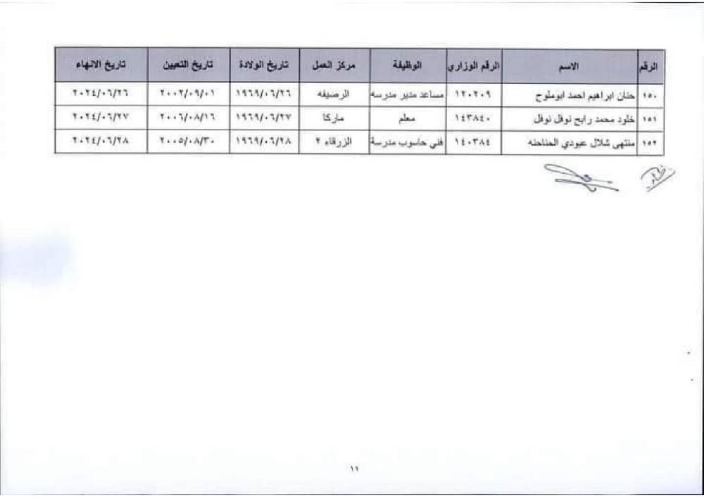 إنهاء خدمات 152 موظفا في التربية (اسماء)