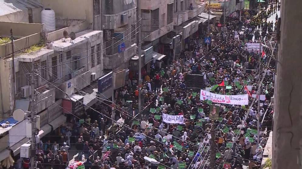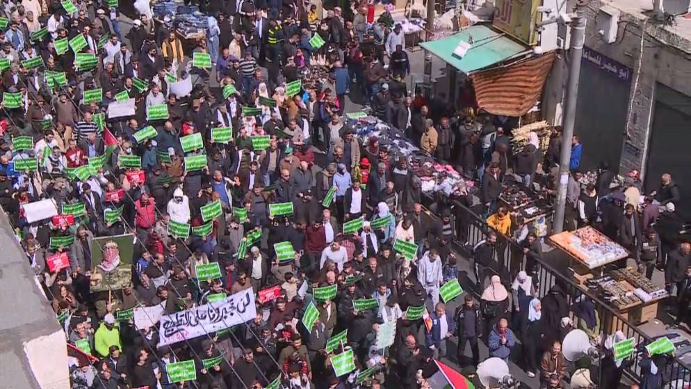 وفي العاصمة عمّان، انطلقت مسيرة من أمام المسجد الحسيني منددة بالعدوان الإسرائيلي على أهالي قطاع غزة وقتل الأطفال والنساء وتجويع الشعب الفلسطيني، كما طالبوا بكسر حرب التجويع.
