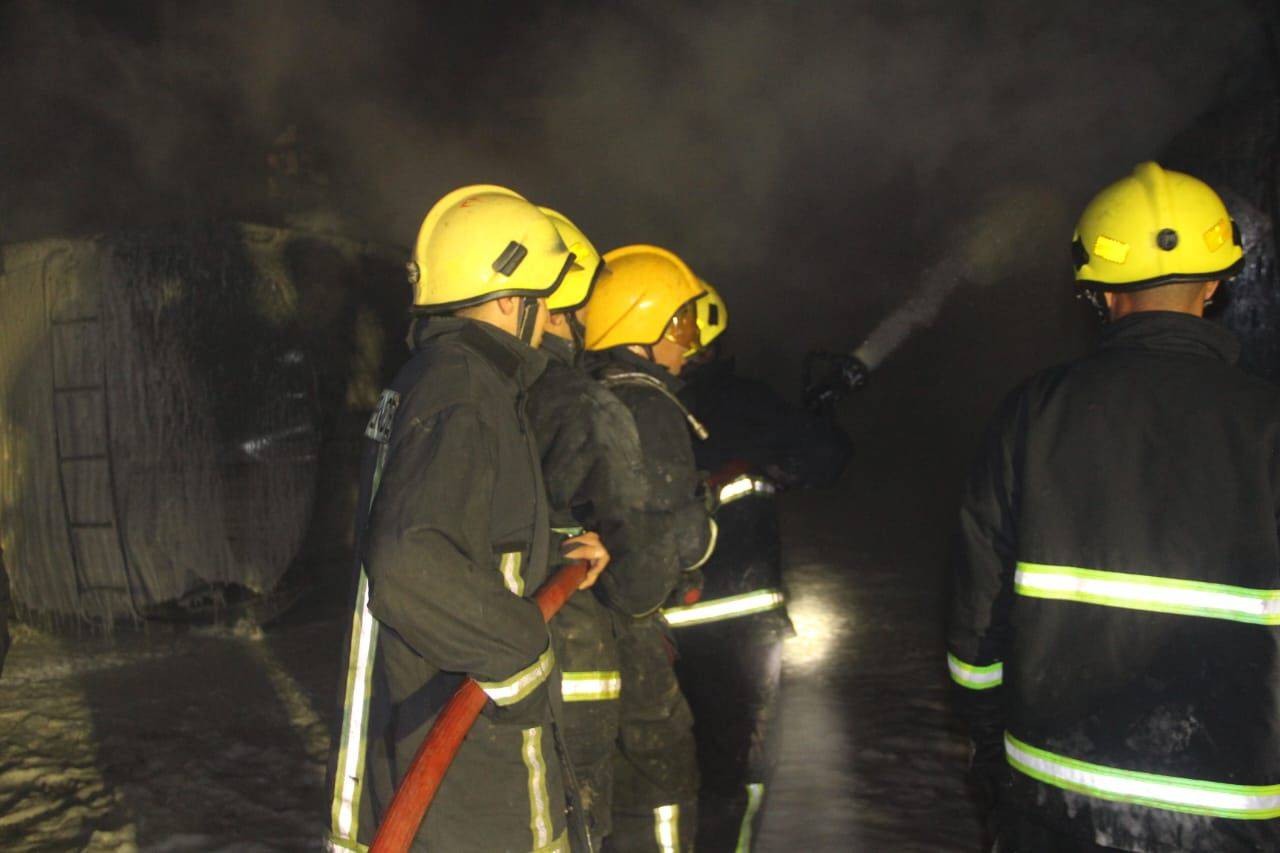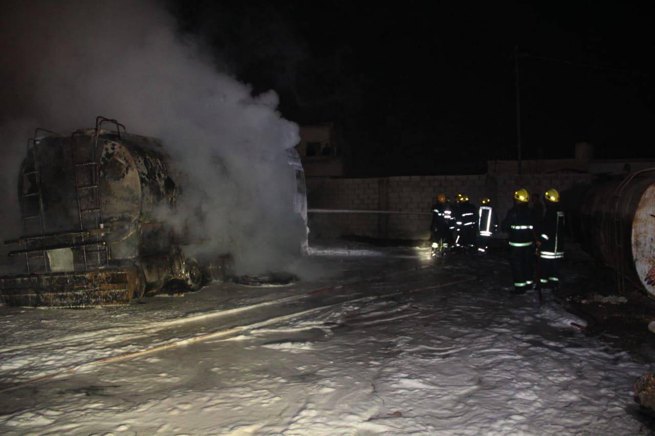 الدفاع المدني يخمد حريق شب في ثلاثة صهاريج محملة بمواد نفطية في محافظة إربد ...صور