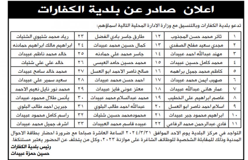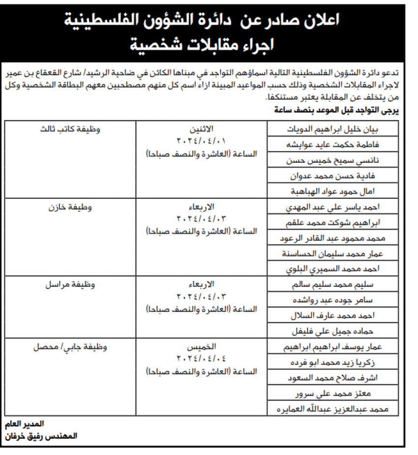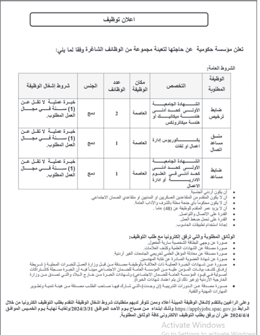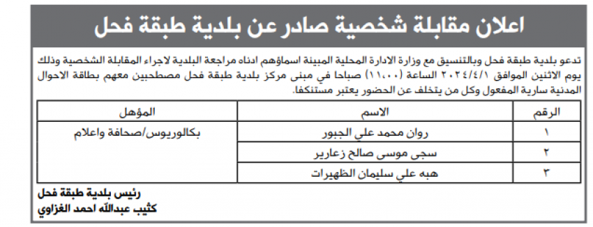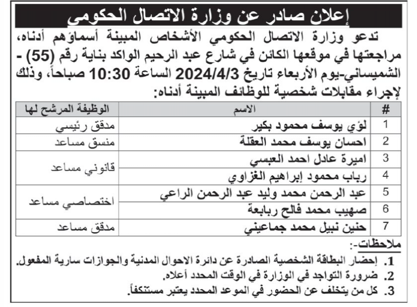 مؤسسات حكومية تدعو لمقابلات شخصية (أسماء)