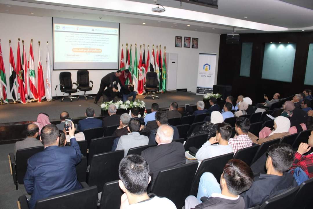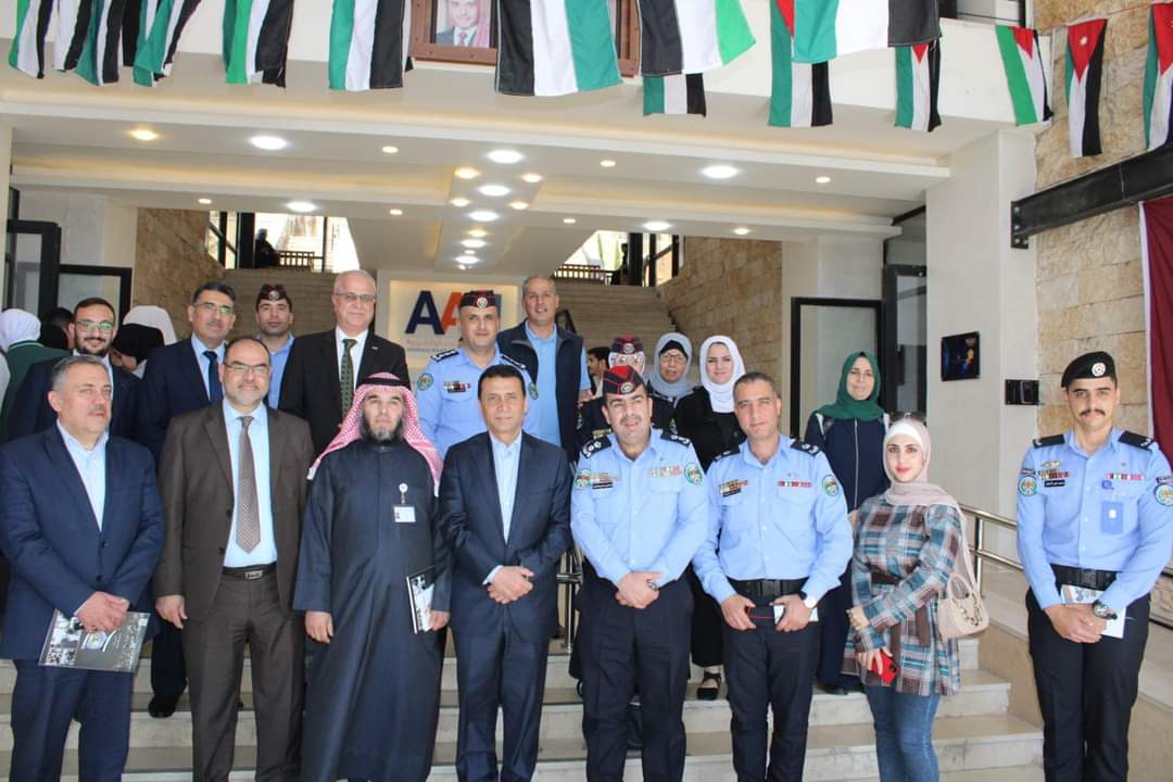 جانب من الندوة التوعوية التي نظمتها الشرطة المجتمعية بعنوان نحو أردن خالٍ من المخدرات في جامعة عمان العربية، بحضور نائب مدير إدارة مكافحة المخدرات العقيد أيمن الصرايرة، ورئيس شعبة الشرطة المجتمعية في مديرية الإعلام والشرطة المحتمعية المقدم وصفي العتوم، ونائب رئيس الجامعة الدكتور إسماعيل يامن.