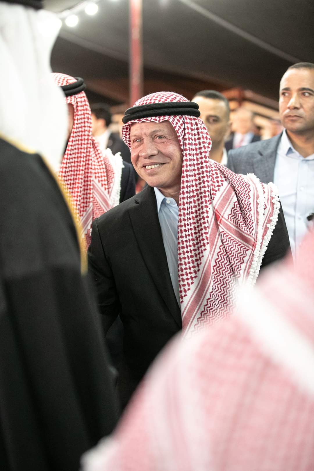 ولدى وصول جلالته موقع اللقاء، ألقى الشاعر أسامة السرحان قصيدة من الشعر النبطي ترحيبا بزيارة جلالة الملك.