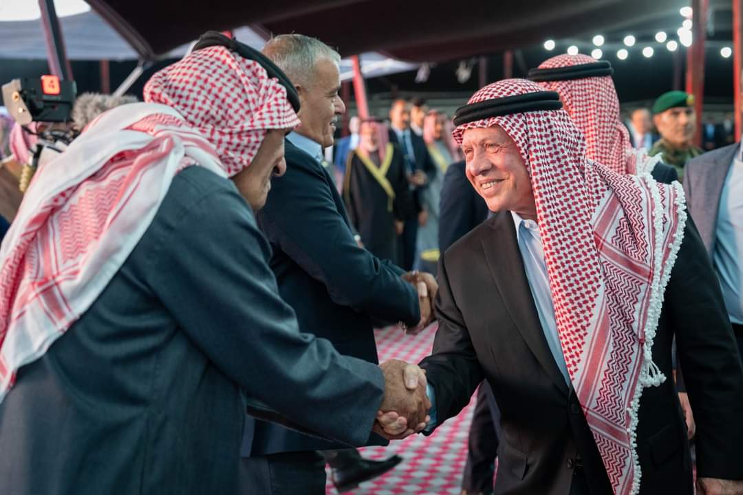 وخاطب جلالة الملك الحضور: "أنتم الأقرب على الحدود الشمالية والشرقية، وتعرفون حجم جهود نشامى الجيش العربي والأجهزة الأمنية لحماية البلد ومحاربة التهريب، وأبناؤكم من هؤلاء النشامى، الذين نعتز بهم".