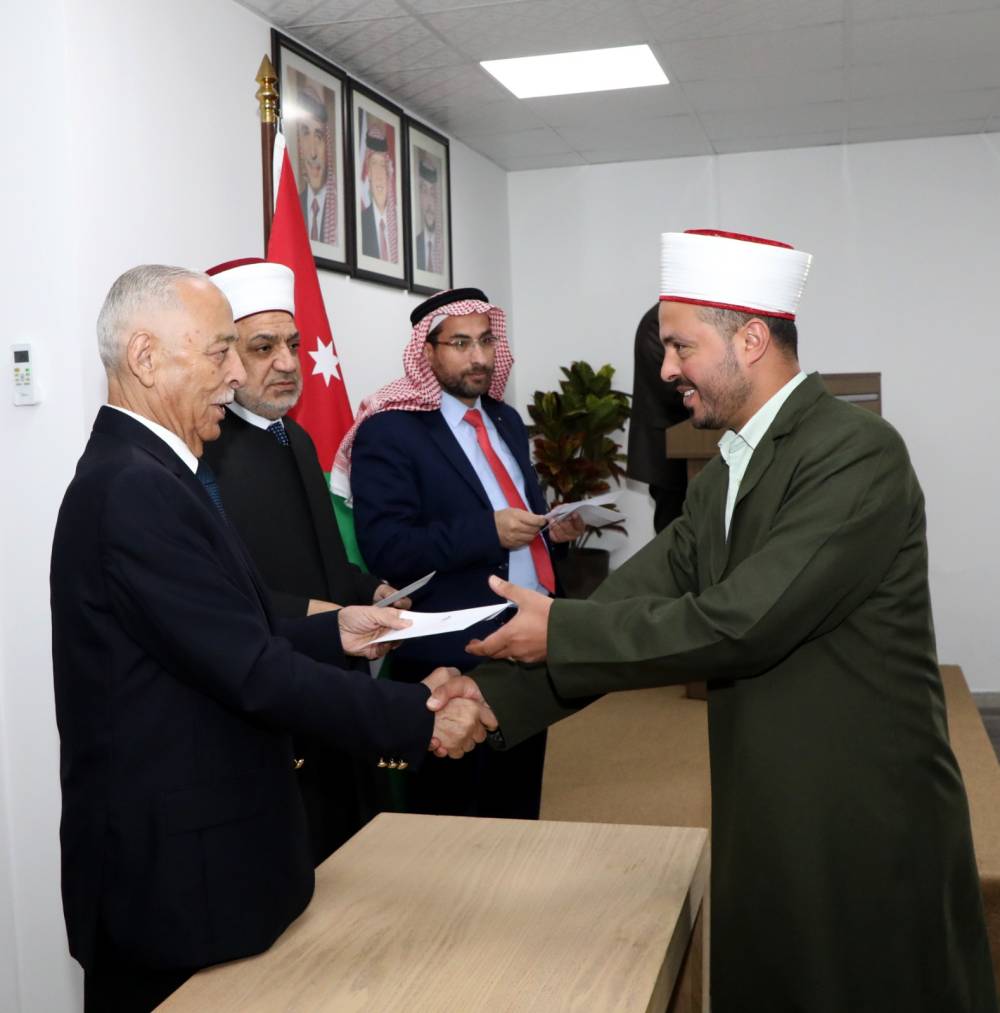 تسلم 30 إماما وواعظا من العاملين بوزارة الأوقاف والشؤون والمقدسات الإسلامية، ودوائر الإفتاء في القوات المسلحة الأردنية – الجيش العربي والأجهزة الأمنية، مكرمة جلالة الملك عبد الله الثاني لمساعدة الأئمة والوعاظ المقبلين على الزواج.