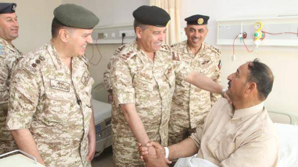 عاد عدد من كبار ضباط القوات المسلحة الأردنية ــ الجيش العربي، اليوم الأربعاء، أول أيام عيد الفطر السعيد، المرضى في جميع المستشفيات العسكرية التابعة لمديرية الخدمات الطبية الملكية بمختلف محافظات المملكة، وذلك في إطار التواصل المستمر للقيادة العامة للقوات المسلحة، مع المرضى من العاملين والمتقاعدين لتأمين احتياجاتهم والاطمئنان عليهم.